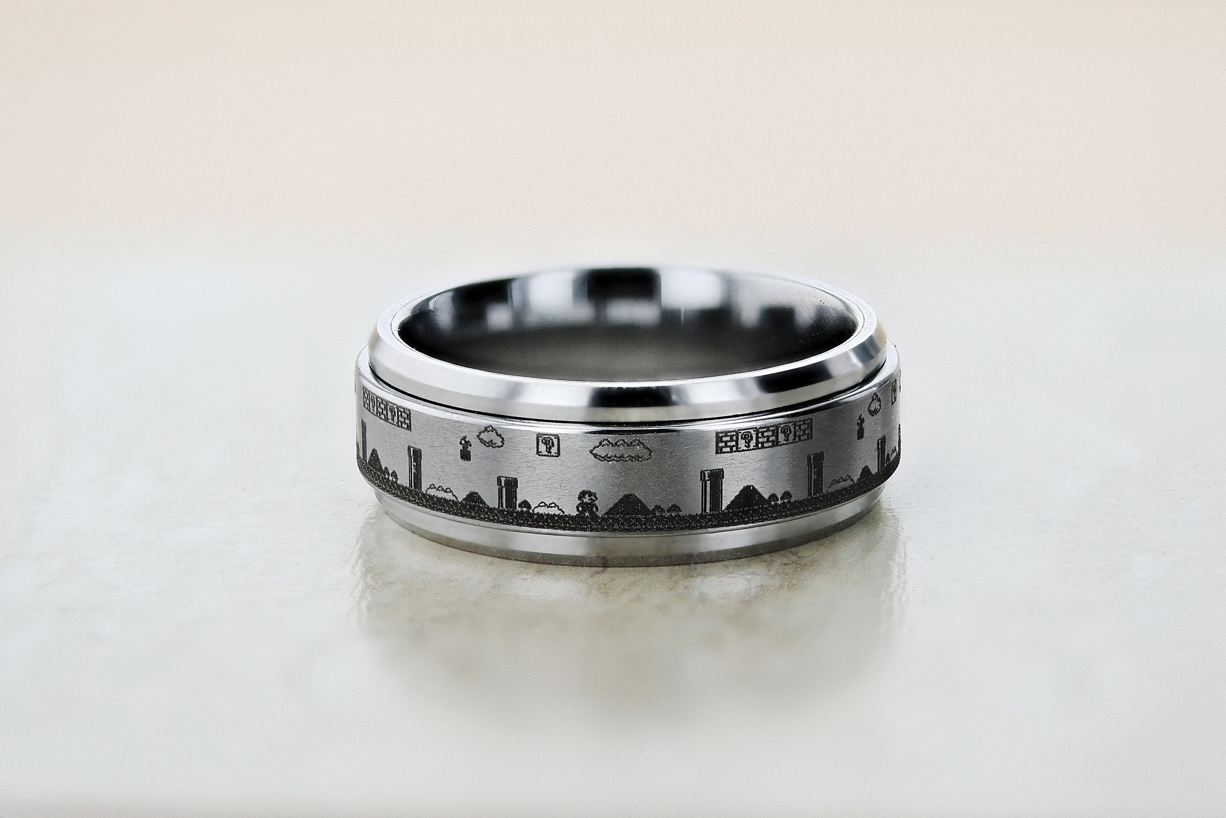 Laser Engraved Fidget Spinner Ring Super Mario Bros Level Pixel