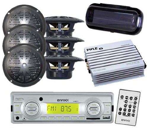 Enrockmarine Pontoon Boat Audio Package Jvc Kd X35mbs Marine Am Fm Bluetooth Siriusxm Receiver Radio Cover Black 4x Jvc Cs Dr6200m 6 5 Marine