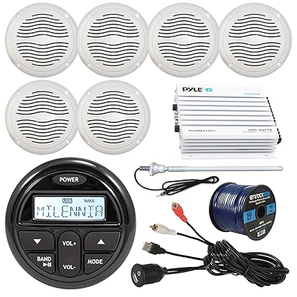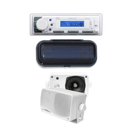 Pyle Pyle Plmrkt38w Bluetooth Marine Stereo Receiver Speaker System Kit Hands Free Calling Wireless Streaming Mp3 Usb Sd Readers Am Fm Radio