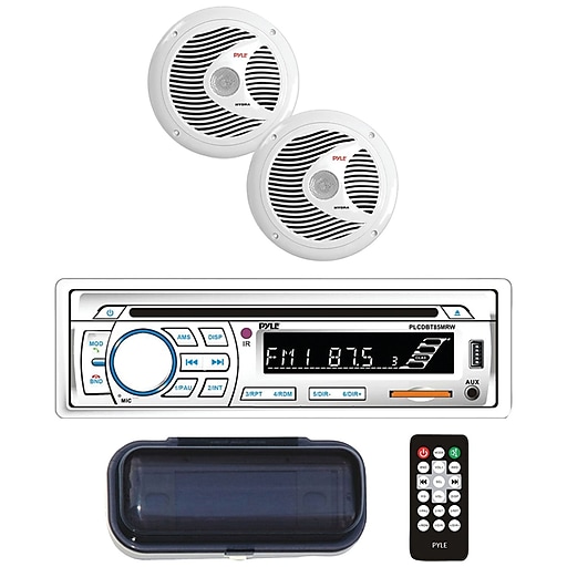 Pyle Plcdbt65mrw Marine Single Din In Dash Cd Am Fm Receiver With Two 6 5 Speakers Splashproof Radio Cover Bluetooth White