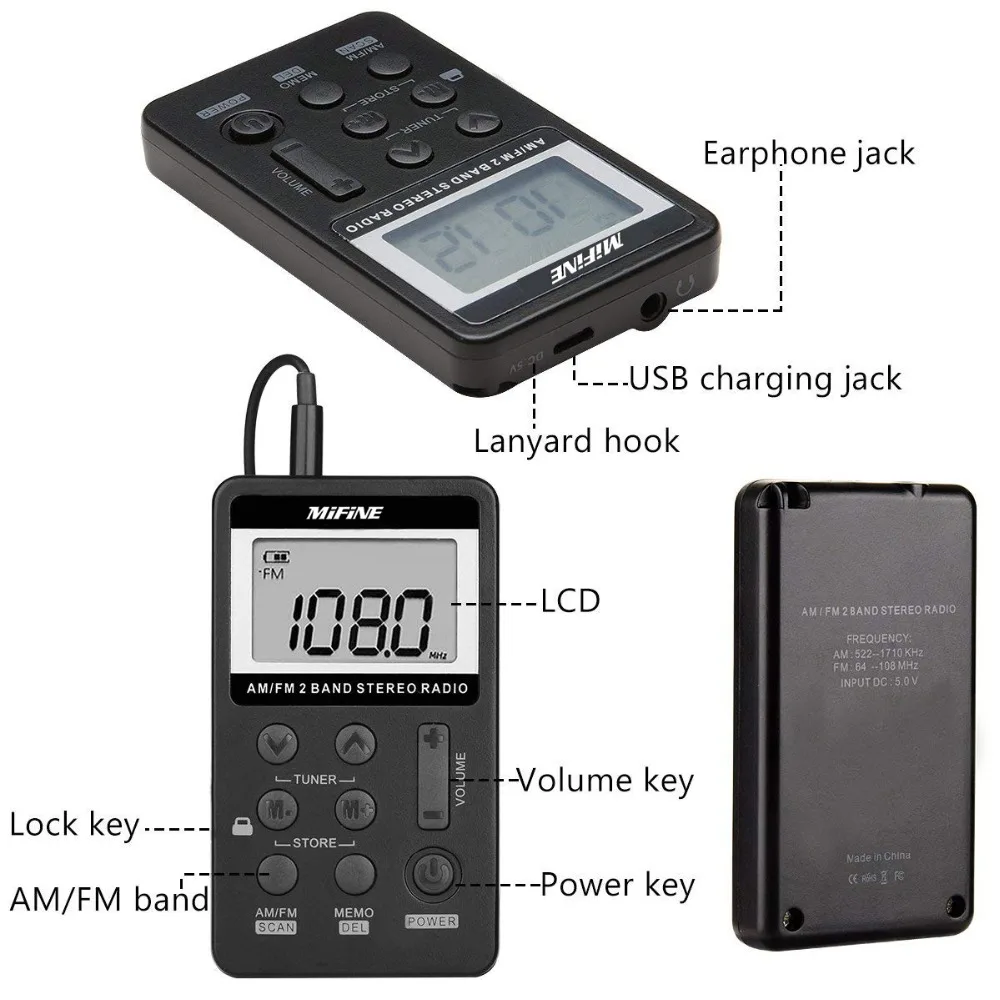 Am Fm Portable Pocket Radio Mini Digital Tuning Stereo With Rechargeable Battery And Earphone For Walk Jogging Gym Camping
