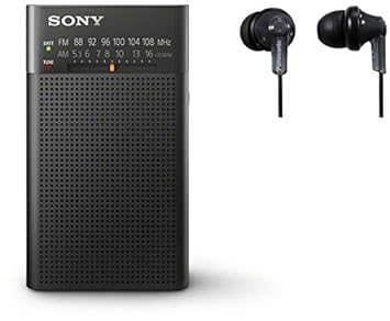 Sony Icfp26 Portable Am Fm Radio Black Bonus Sony Mdr E9lp Black Stereo Earbuds