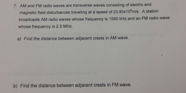 Solved 7 Am And Fm Radio Waves Are Transverse Waves Cons