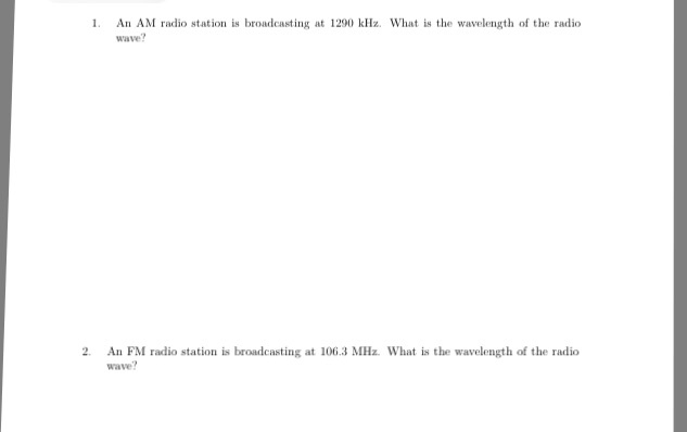 Solved An Am Radio Station Is Broadcasting At 1290 Khz W
