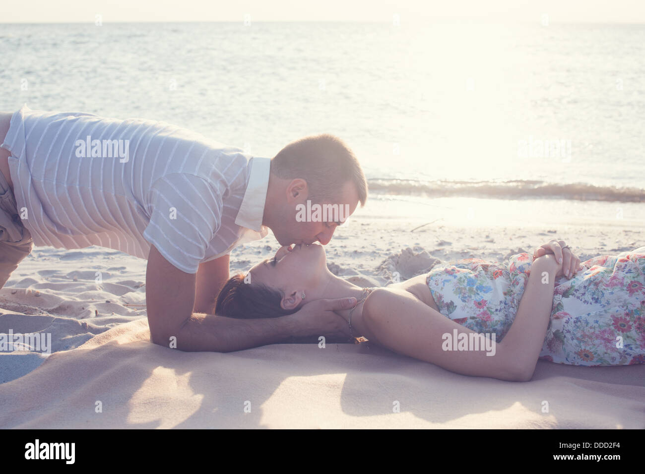 Couple Lying Down Kissing On Beach Stock Photo Getty Images