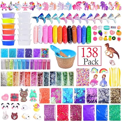Amazon Com Diy Unicorn Slime Supplies Kit 138 Pack Include Slime