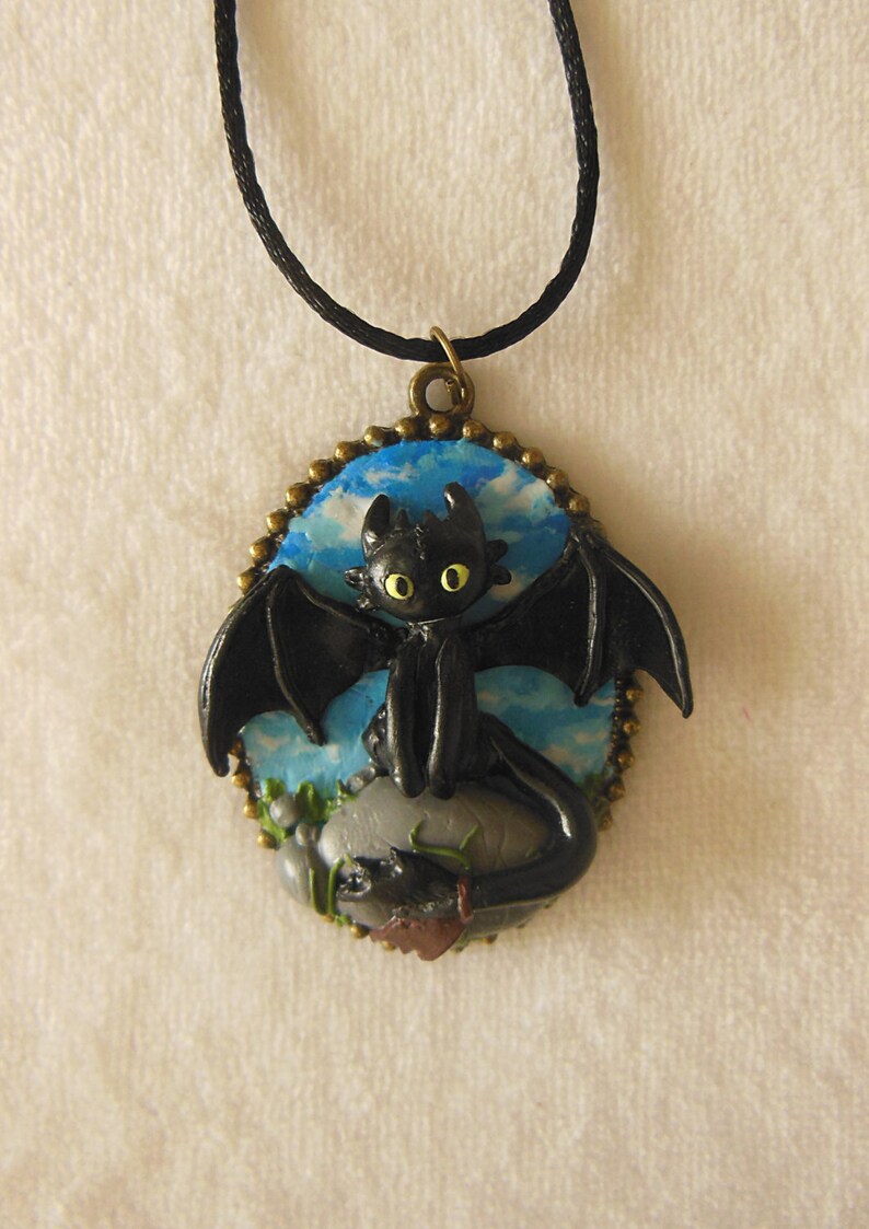 How To Train Your Dragon Toothless Necklace Polymer Clay Etsy
