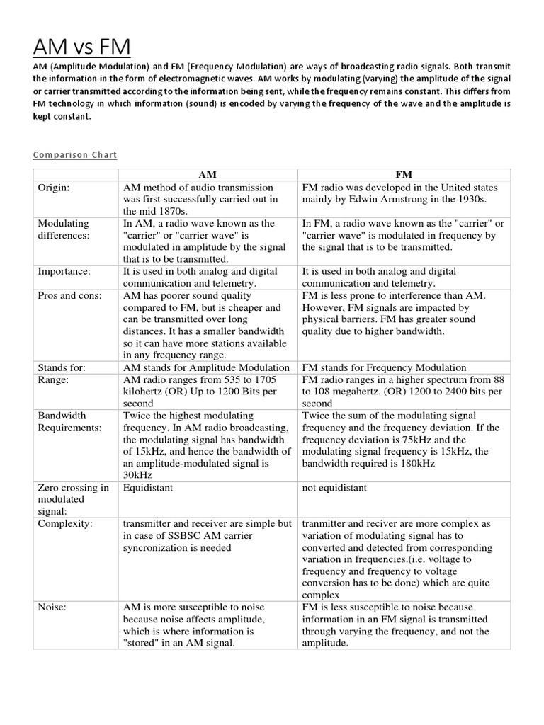 Advantages And Disadvantages Of Am And Fm Am Fm