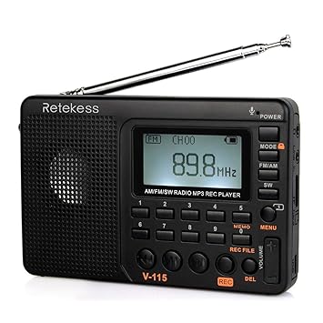 Retekess V115 Portable Am Fm Radio With Shortwave Radio Mp3 Player Digital Record Support Micro Sd Tf Card Sleep Timer And Rechargeable Battery Black