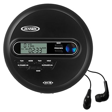 Jensen Portable Cd Player Personal Cd Mp3 Player Am Fm Radio With Lcd Display Bass Boost 60 Second Anti Skip Cd R Rw Compatible Sport Earbuds
