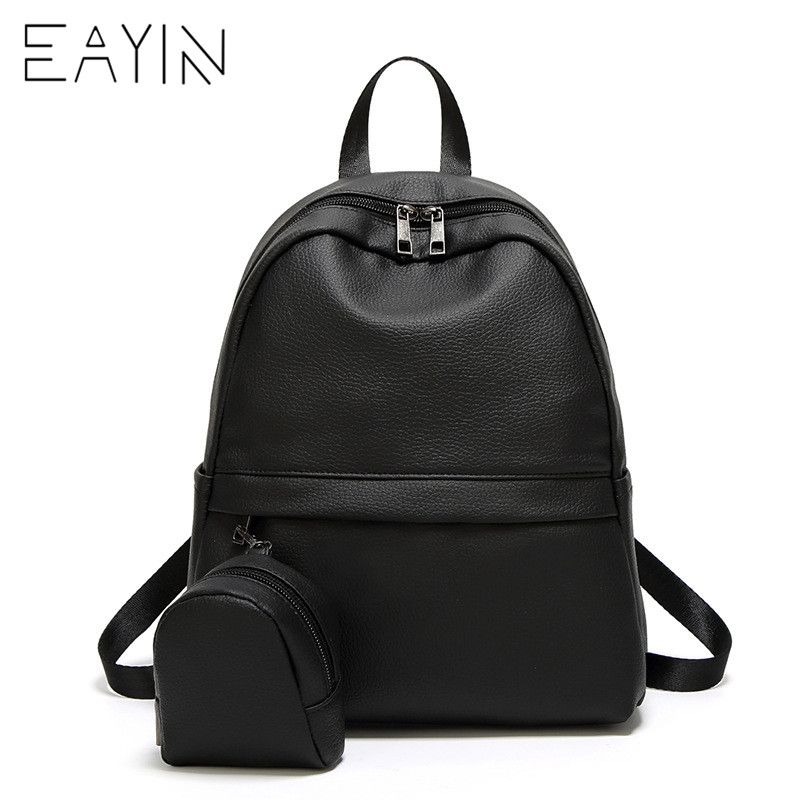 Eayin Brand Women Backpack Pu Leather School Bags With Mini Purse