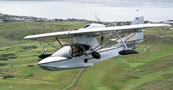 Amphibious Microlight Airplane Takeoff Flight And Landing A Flying