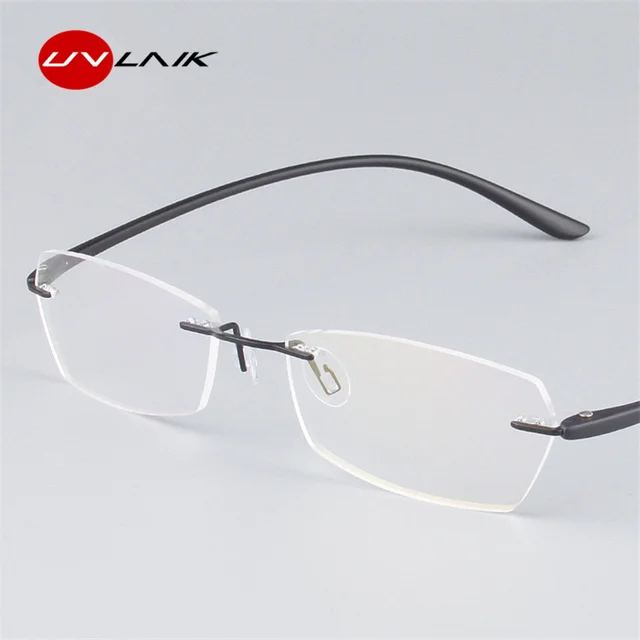 Uvlink Classic Mens Plastic Titanium Rimless Glasses Frames For