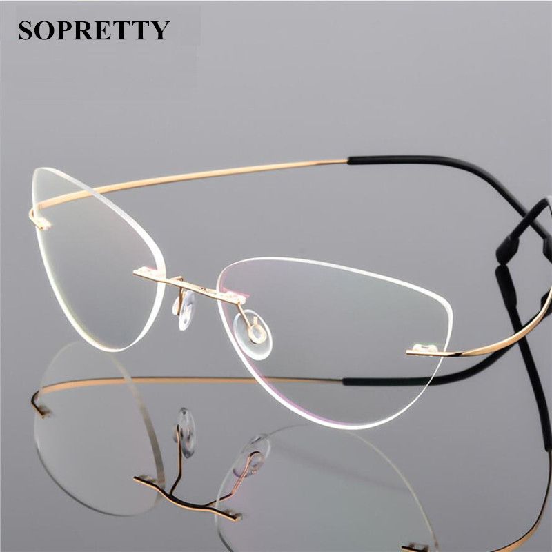Cat Eye Rimless Glasses Frame Women Titanium Ultralight Eyeglasses