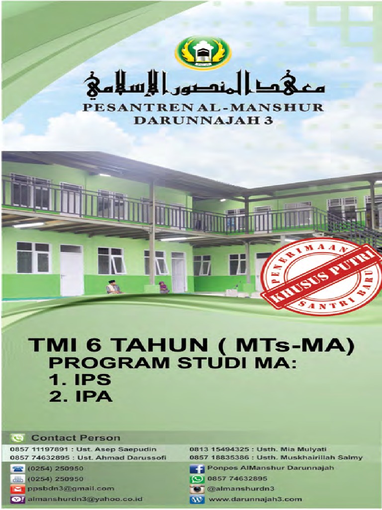 Brosur Pondok Pesantren Al Manshur Darunnajah 3 Serang Banten