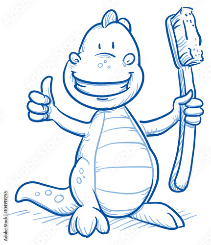 Cute Cartoon Dinosaur With Shiny Teeth Holding A Toothbrush