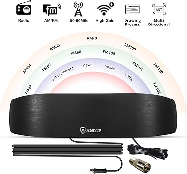 Amazon Com Antop Amplified Indoor Am Fm Antenna 50 Mile Radio