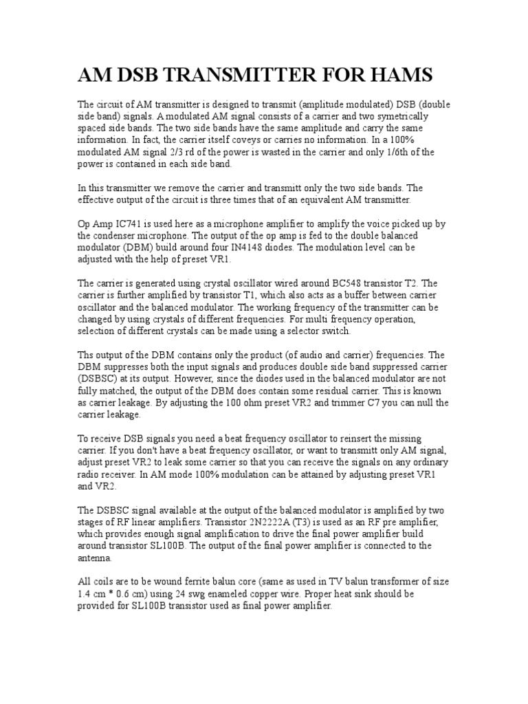 Am Dsb Transmitter For Hams Amplifier Transmitter