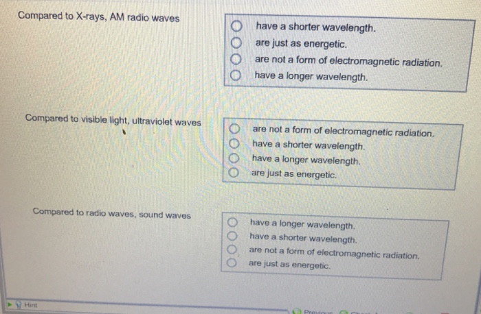 Solved Compared To X Rays Am Radio Waves O O O O Have A