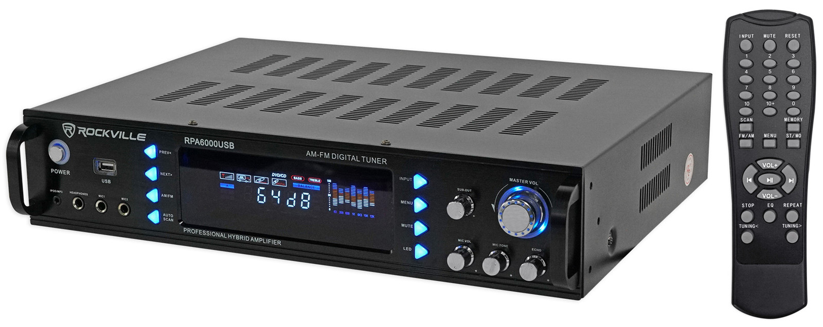 Rockville Rpa6000usb 1000w 2 Channel Rack Dj Ampli In Musical