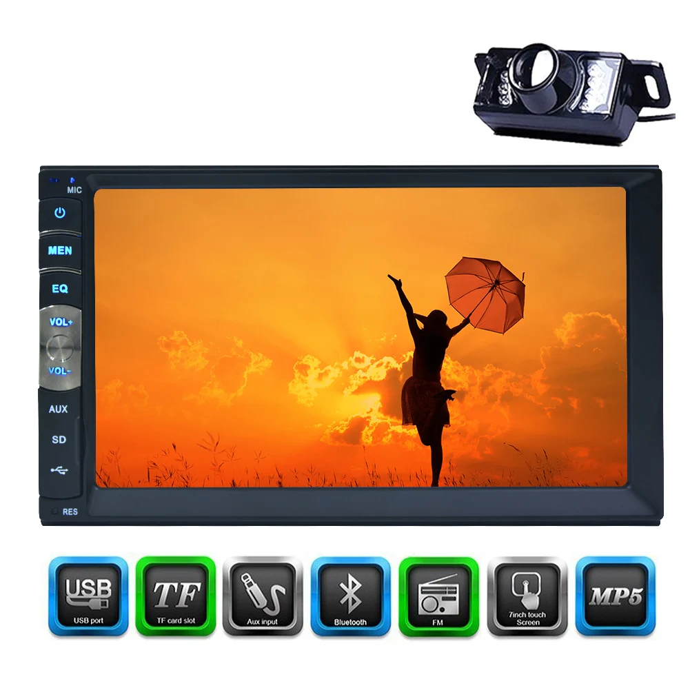 Double Din Car Stereo With 12led Backup Camera 7 Inch Touch
