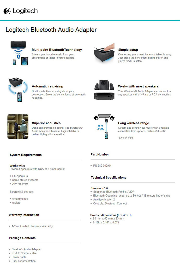 Logitech Bluetooth Audio Adapter Simple Setup Long Induced Info