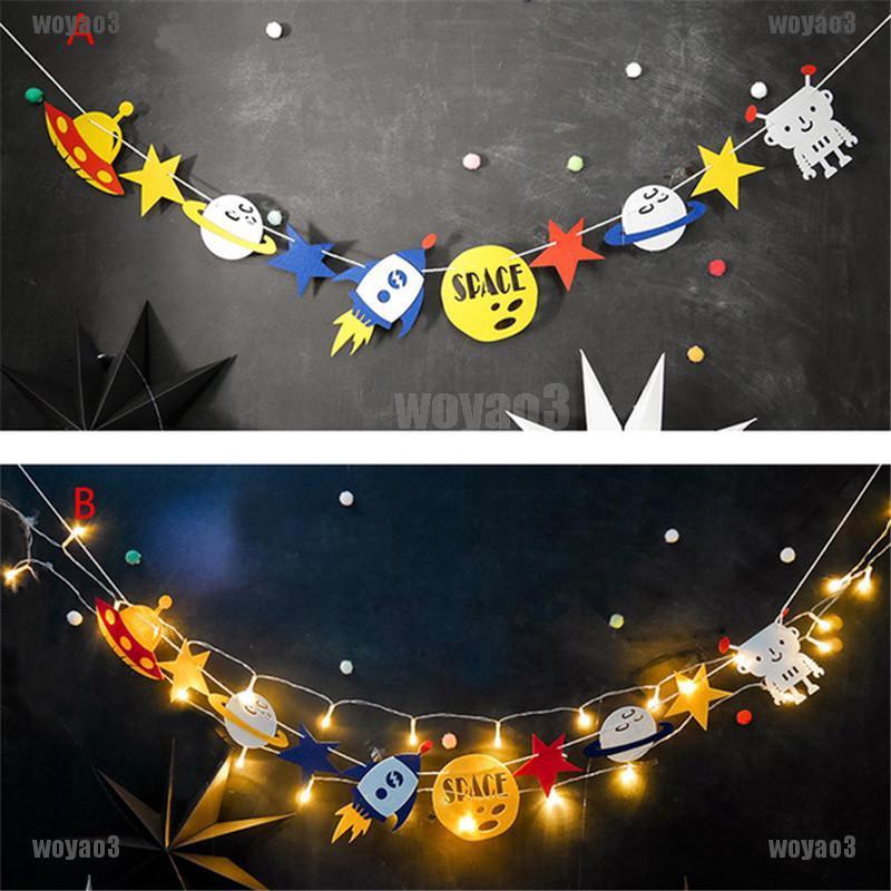 Hiasan Gantung Banner Bunting Motif Alien Robot Bintang Planet