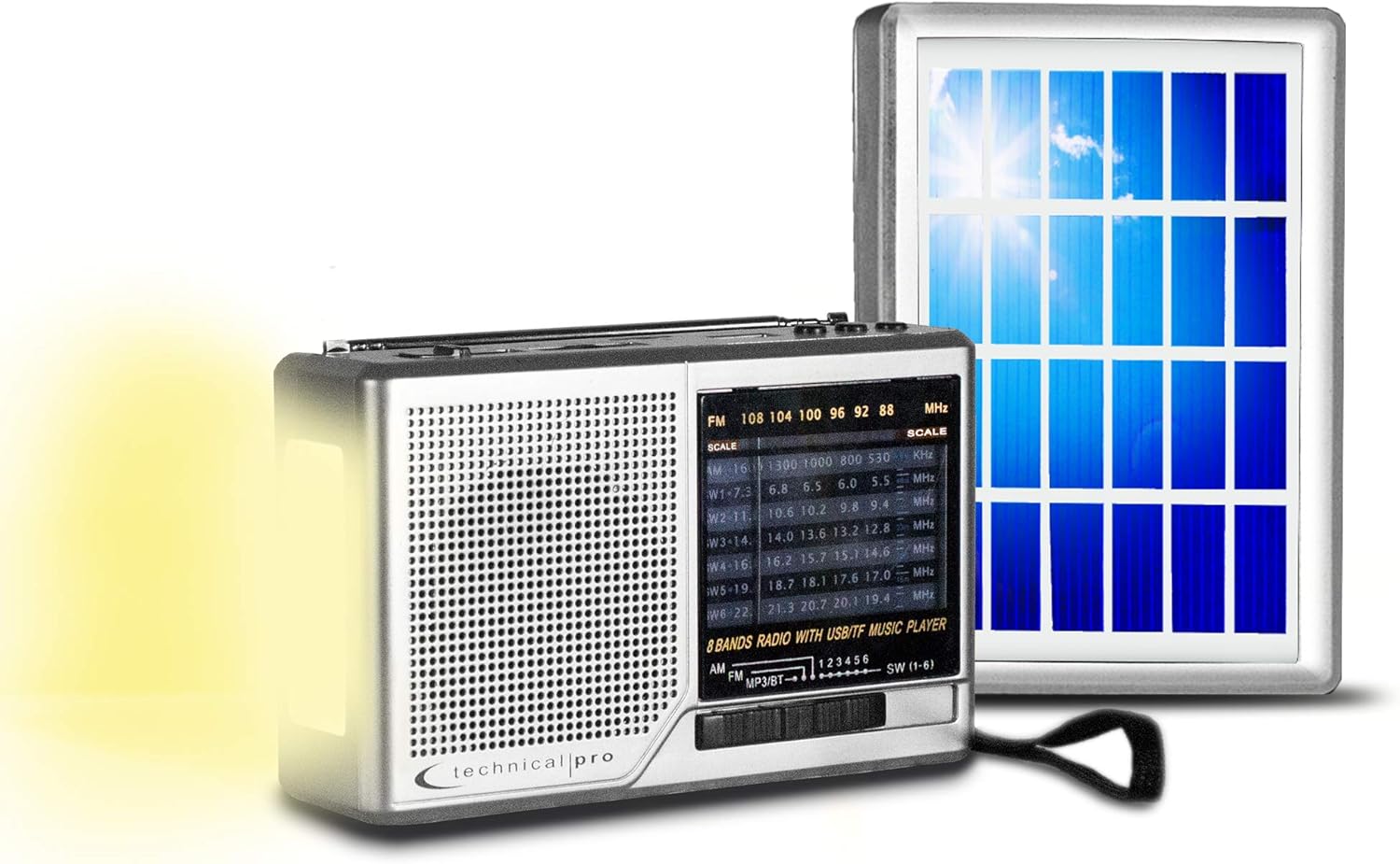 Amazon Com Technical Pro Solar Powered Am Fm Sw Radio Portable Speaker Rechargeable Listening Device With Headphone Output Wrist Strap For Easy Carrying Durable Design Manual Tuning Home Audio Theater