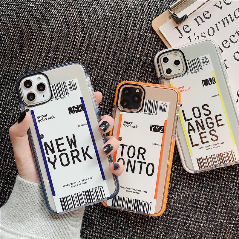 Air Ticket Bar Code Clear Case For Iphone 11 Pro Xs Max Xr X 6s 7 8 Plus Simple Letter New York Transparent Shockproof Cover Cell Phone Pouch Personalized Cell Phone Cases