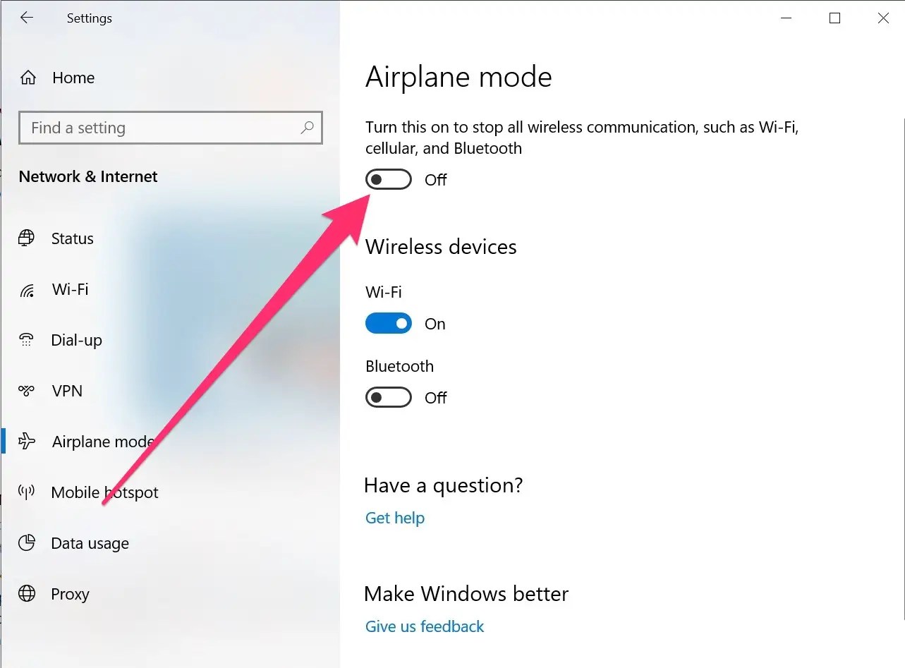 Disable Airplane Mode Windows 10