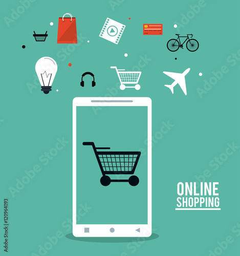 Smartphone Bag Airplane Movie Headphone And Cart Icon Shopping Online Ecommerce And Media Theme Colorful Design Vector Illustration Buy This Stock Vector And Explore Similar Vectors At Adobe Stock Adobe Stock