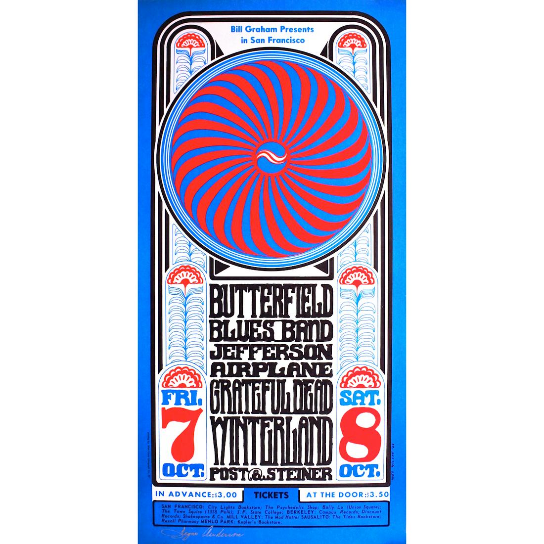 Jefferson airplane fillmore san francisco original concert poster f3 sold on 07 dec 2020 price guide for collectable vinyl records cds cassettes reel to reel tapes 8 track cartridges minidiscs and more. The poster relates more directly to graham who is credited with coining the phrase the san francisco sound which.
