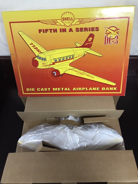 New Shell Fifth In A Series Dc 3 Die Cast Metal Airplane Bank 45005 For Sale Online